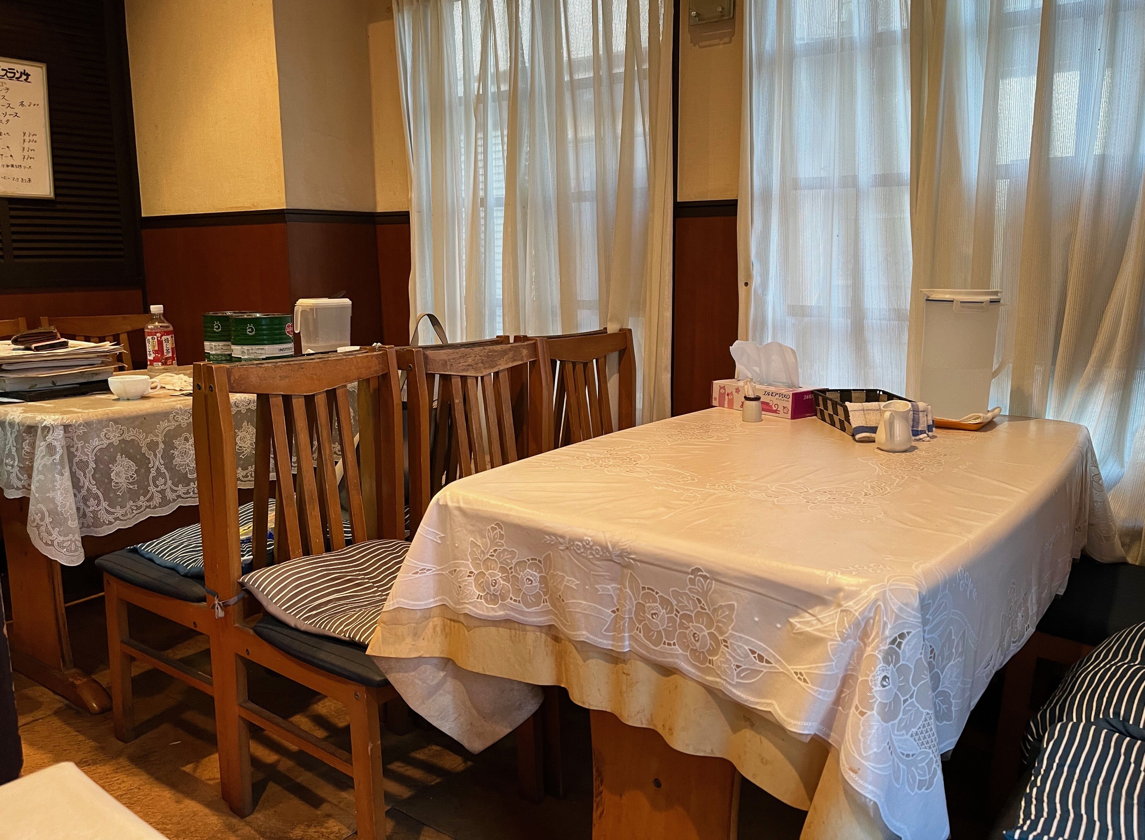 店内は木材の座席で白いテーブルクロスが敷いてありちょっとお洒落なレストランに入った気分でした