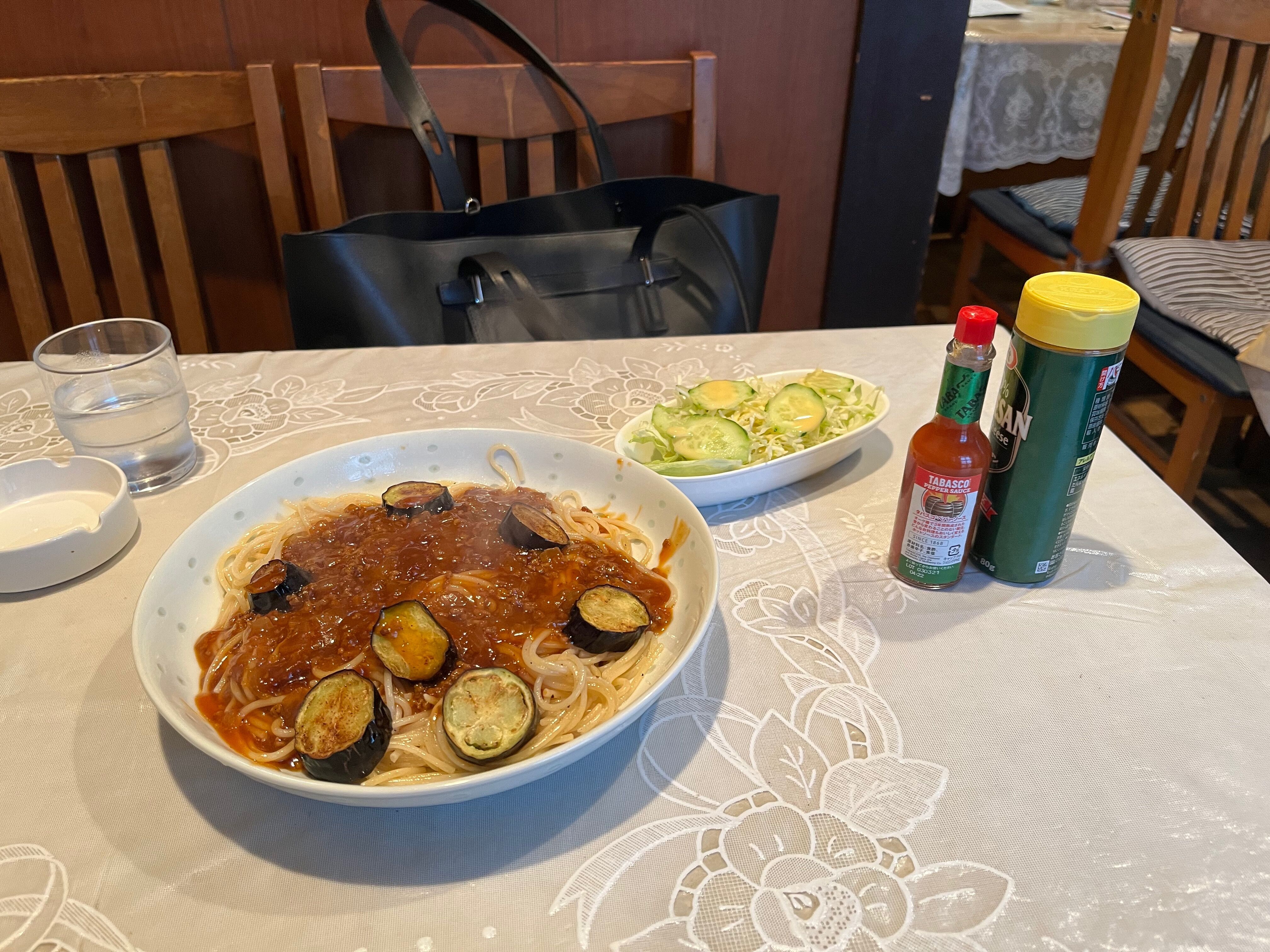 「本日のサービスランチ」の中からミートパスタセットを注文!